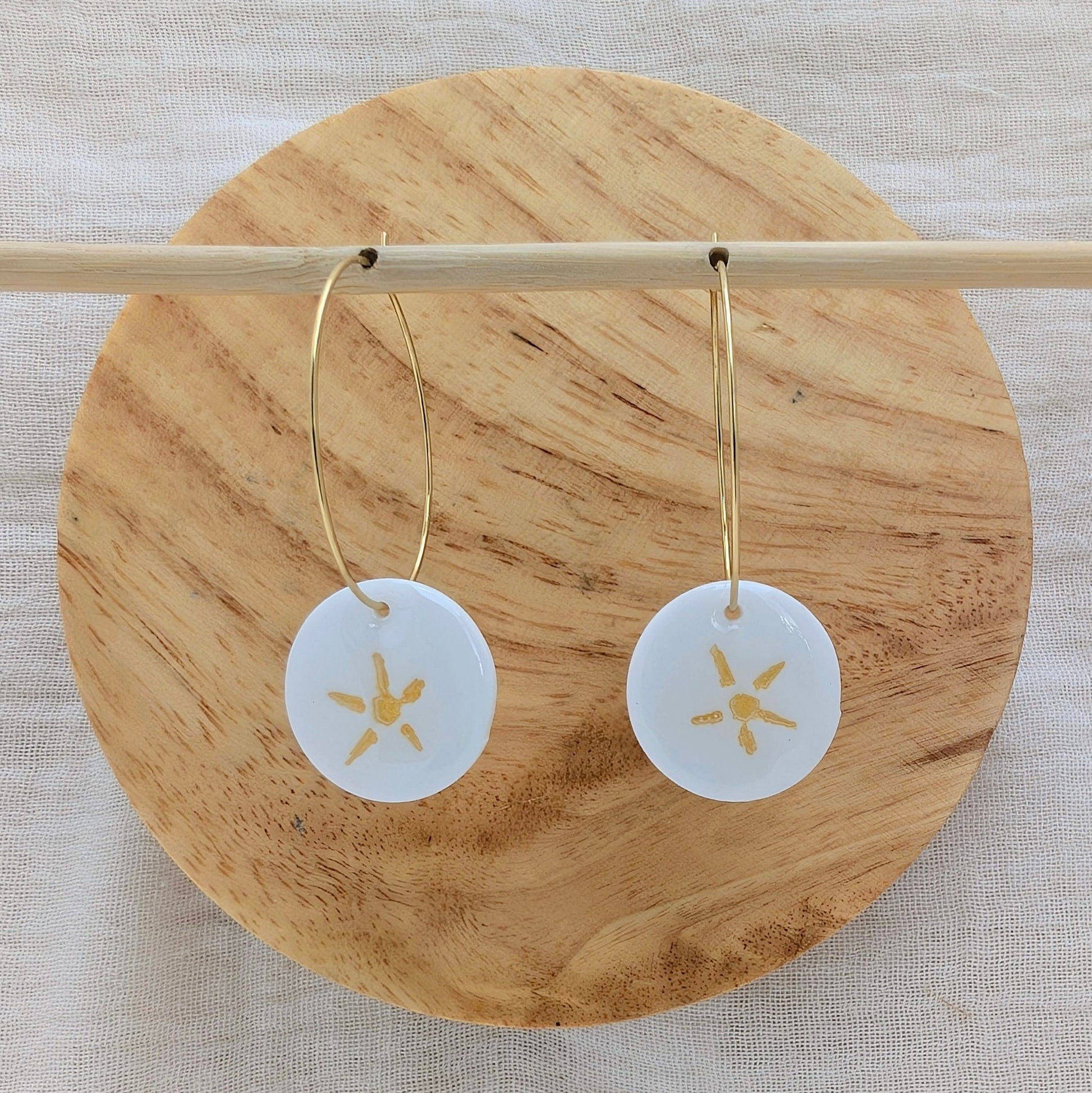 Boucles d'oreilles petit rond blanc / soleil doré