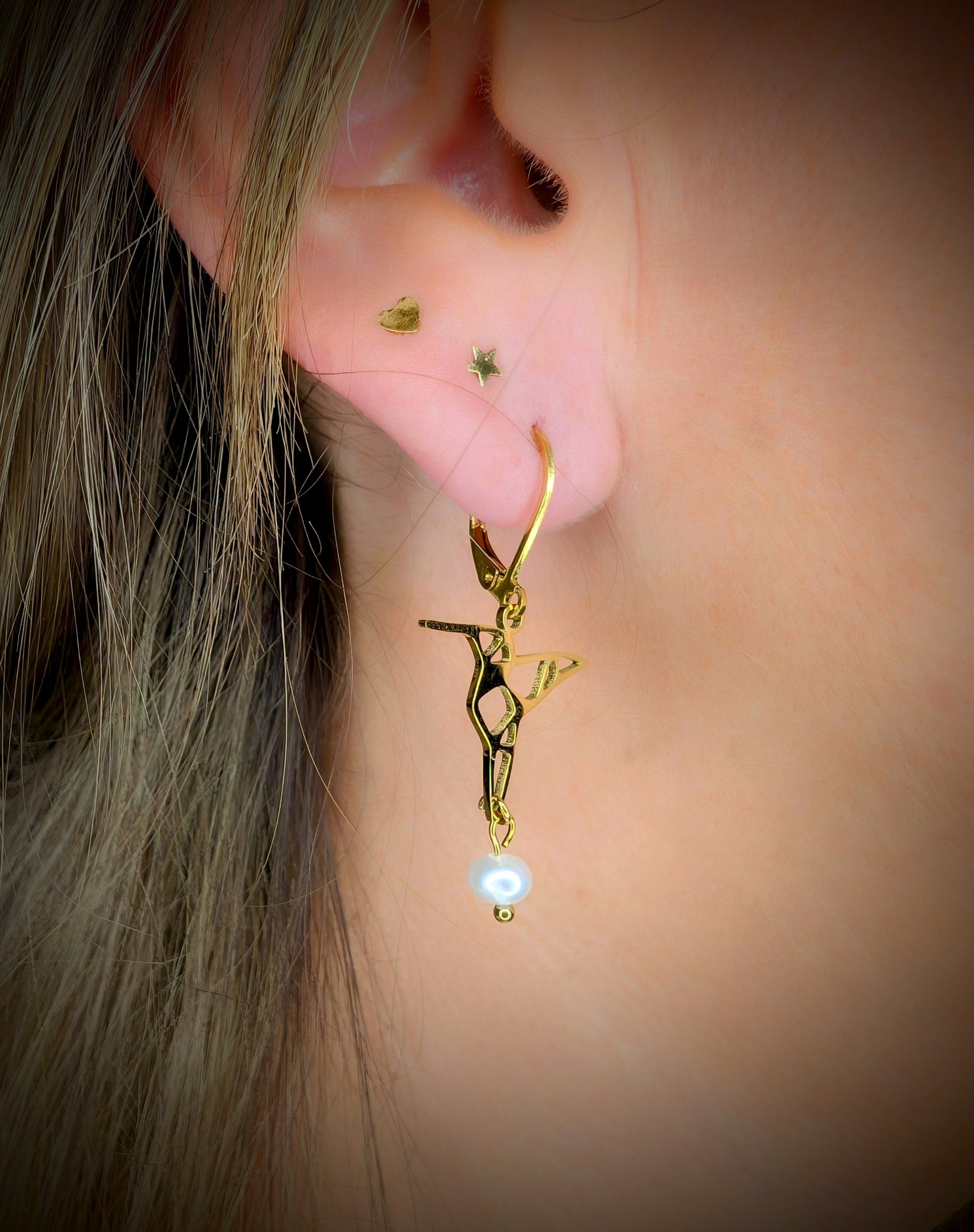 Boucles d'oreilles en acier inoxydable et perles d'eau douce.